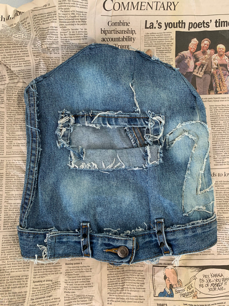 hand sewn and bleached 2 on side